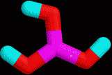 Ein weiteres Beispiel für ein Molekül mit einer Drehspiegelachse stellt, das (eben angeordnete) Borsäuremolekül dar. Dieses Molekül besitzt eine dreizählige Drehspiegelachse S3. Diese Drehspiegelachse läuft durch das Boratom und ist senkrecht zur Papierebene (in der wir uns das Molekül angeordnet denken) orientiert. Bei einer Drehung um den Winkel 360°/3 = 120° geht das Molekül aus der Anordnung I in die Anordnung II über. (Zur besseren Übersicht sind in den Abbildungen die H-Atome numeriert.) Wenn wir anschließend das Molekül an der Molekülebene (Papierebene) spiegeln, dann ändert sich selbstverständlich die Anordnung des Moleküls nicht, da alle Atome des Moleküls in der Spiegelebene liegen. Wir sind also durch Drehung um 120° und anschließende Spiegelung an einer senkrecht zur Drehachse angeordneten Spiegelebene zu einer mit I äquivalenten Anordnung des Moleküls, nämlich II gekommen. Die ausgeführte Symmetrieoperation entspricht einer Drehspiegelung an einer dreizähligen Drehspiegelachse.